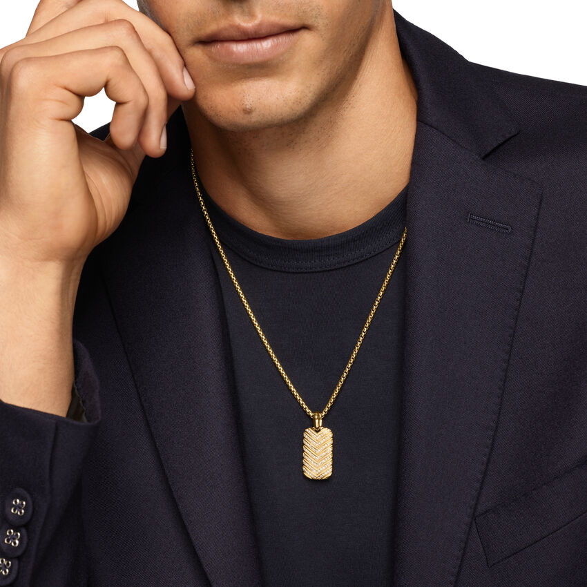 Chevron Tag in 18K Yellow Gold with Diamonds, 27mm | Aucoin Hart Jewelers